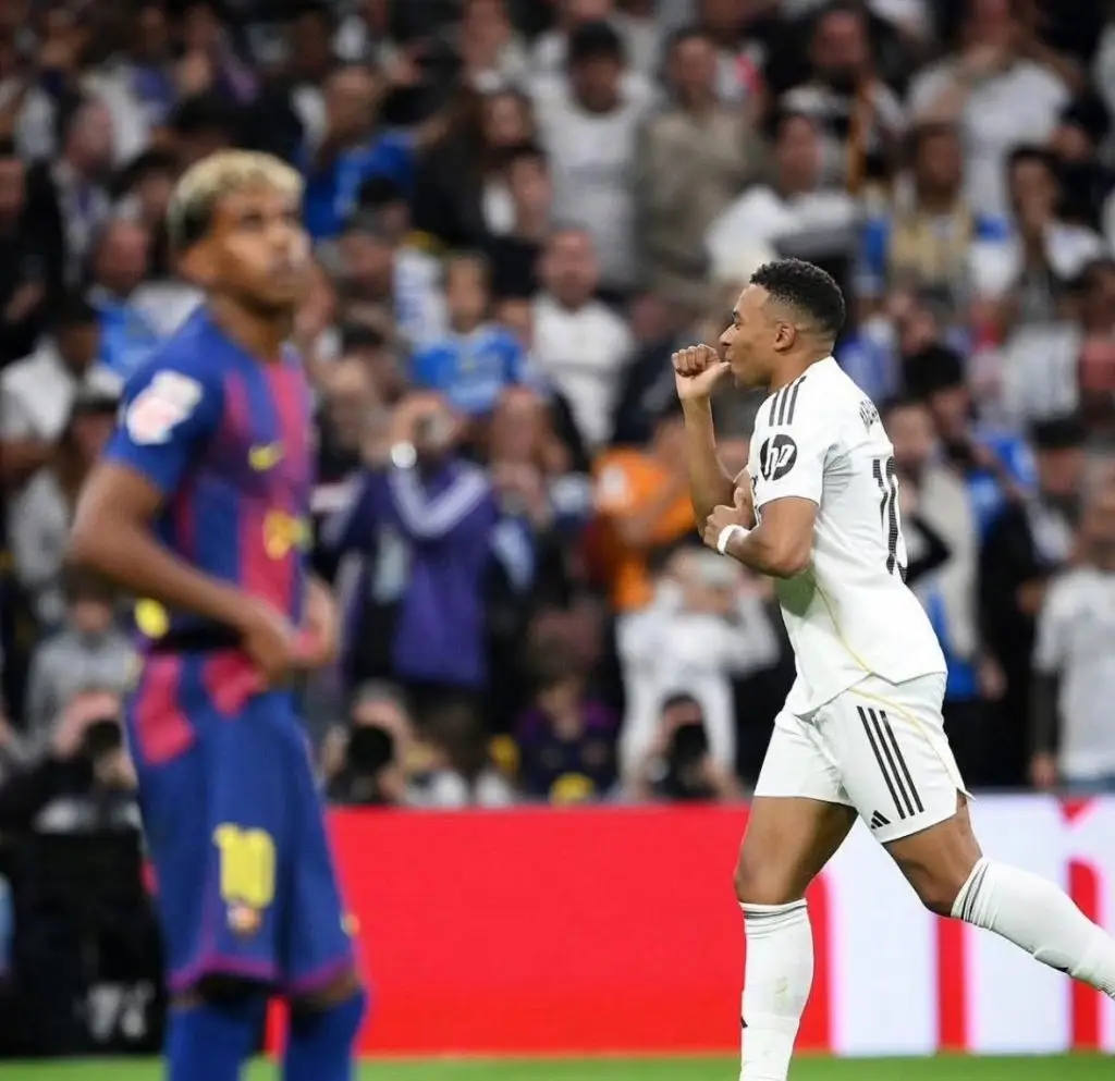 Real Madrid tampil dominan sejak awal. Serangan mereka banyak bertumpu pada trio Vinícius Jr, Kylian Mbappé, dan Jude Bellingham. Hasilnya terlihat di menit ke-22 saat Mbappé membuka keunggulan setelah menerima umpan matang dari Bellingham. Bernabéu bergemuruh, namun Barcelona tak tinggal diam. Tim asuhan Hansi Flick itu menyamakan kedudukan di menit ke-38 lewat sepakan Fermín López, memanfaatkan kesalahan lini belakang Madrid.